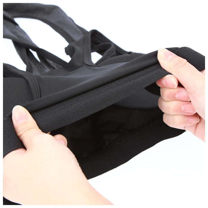 ・バストに直接あたるブラの内側部分は通気性の良いメッシュ仕様。アンダーバストには優しいゴムを使用し締め付け過ぎない快適な着用感。