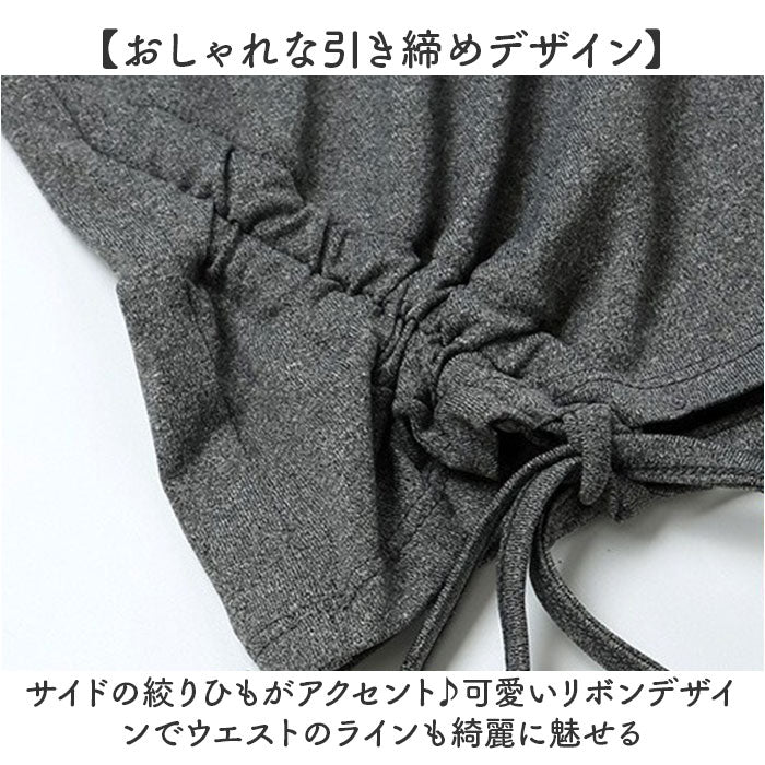 ・サイドの絞りひもがアクセント♪可愛いリボンデザインでウエストのラインも綺麗に魅せる