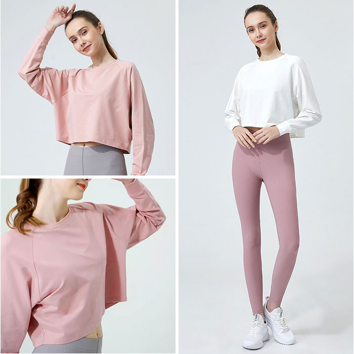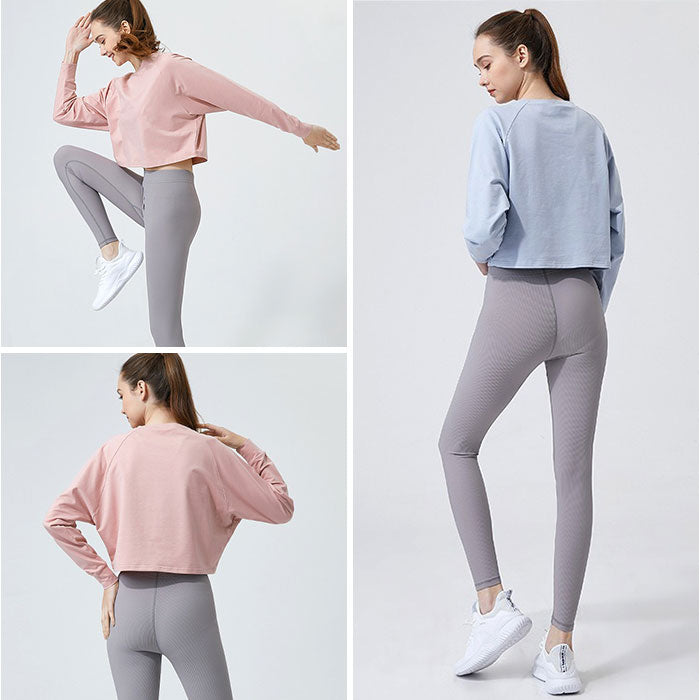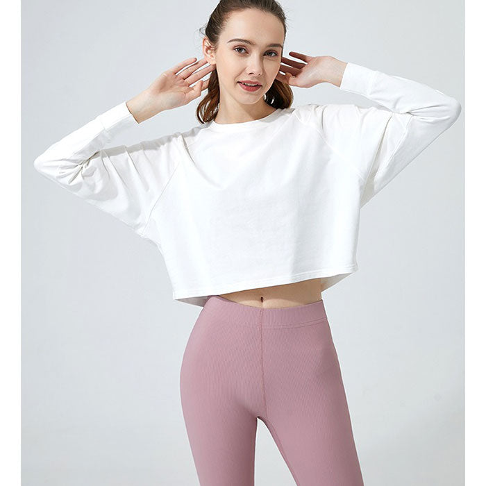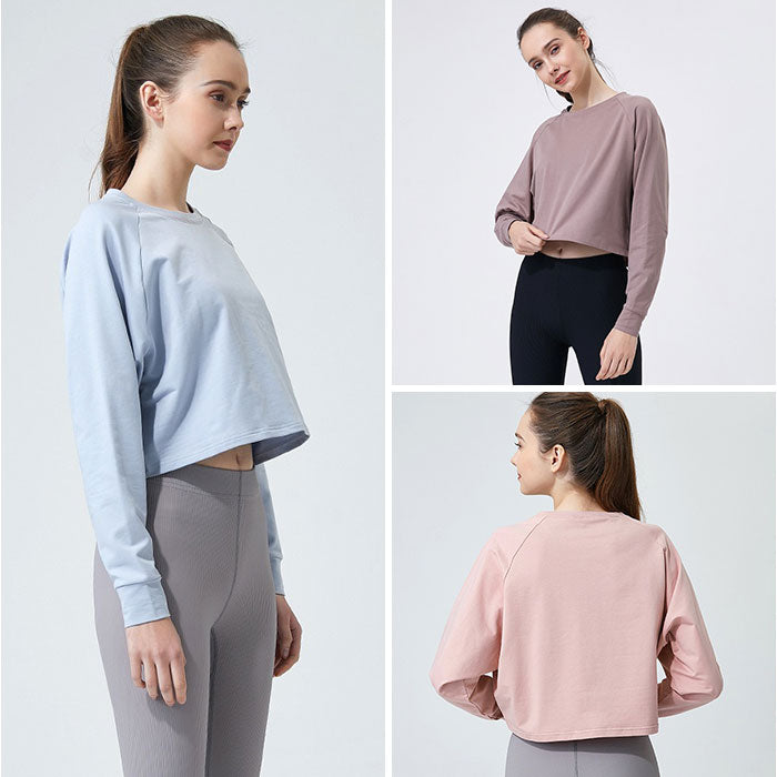 ヨガウェア 長袖 トップス 通販 ヨガシャツ フィットネスウェア トレーニングウェア ショート丈 ヨガ クロップド丈 体型カバー ゆったり レディース ピラティス ホットヨガ エクササイズ