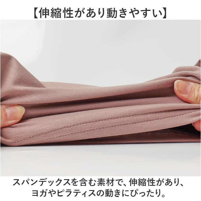 ・スパンデックスを含む素材で、伸縮性があり、ヨガやピラティスの動きにぴったり。
