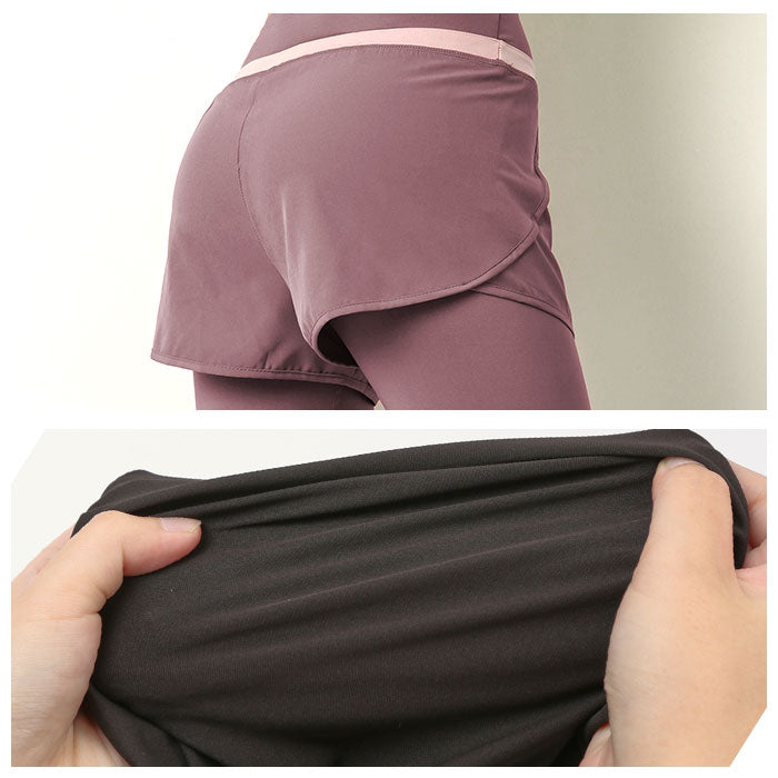 ヨガパンツ レディース 通販 パンツ レギンス パンツ 一体型 大きいサイズ 伸縮性 速乾性 体型カバー ショートパンツ 付 ヨガウェア フィットネス スポーツウェア トレーニング ボディーシェイプ leeche レディース