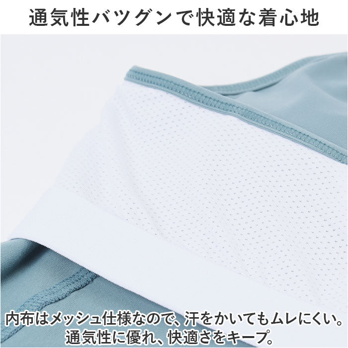 ・内布はメッシュ仕様なので、汗をかいてもムレにくい。通気性に優れ、快適さをキープ。