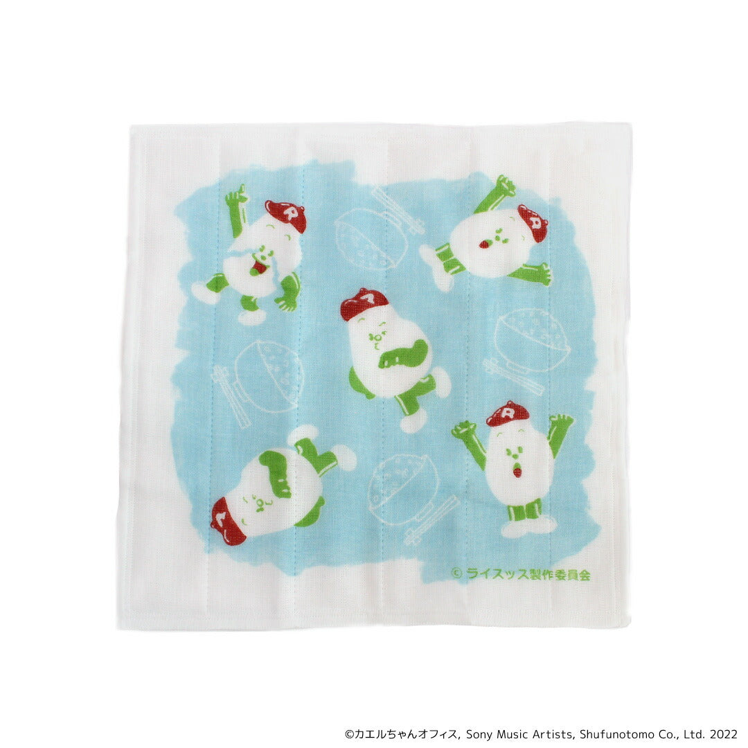 ライスッス グッズ 通販 日本製 かや生地 ふきん 布巾 蚊帳生地ふきん 蚊帳生地布巾 手拭き おてふき 台拭き 台ふきん 綿100% キャラクター DJみそしるとMCごはん ケロポンズ