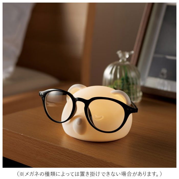 ・クマさんの鼻にメガネを掛けてベッドサイドに置いておくのもおすすめ。(※メガネの種類によっては置き掛けできない場合があります。)