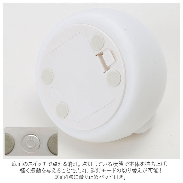 ・点灯している状態で本体を持ち上げ、軽く振動を与えることで点灯、消灯モードの切り替えが可能!