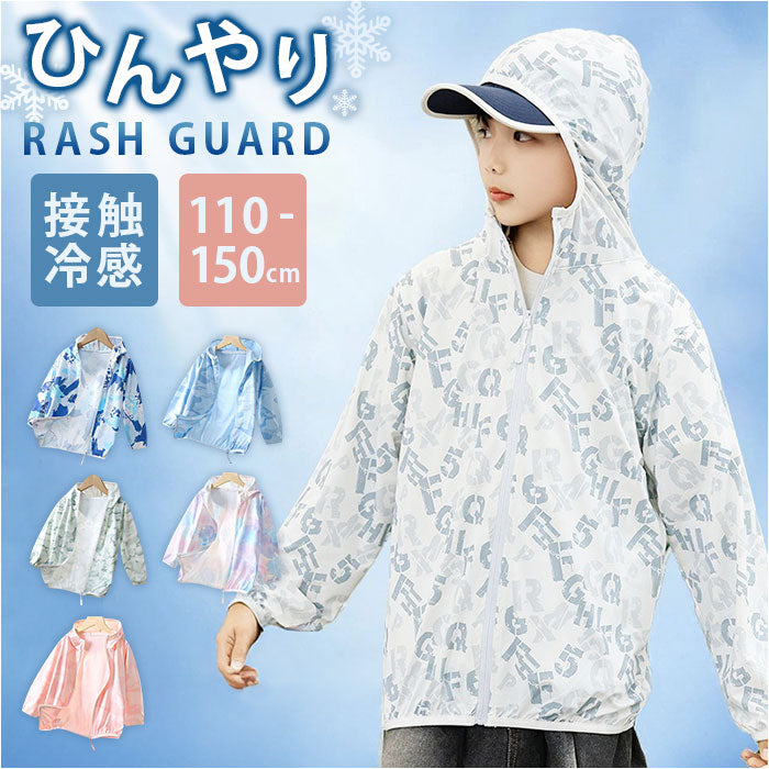 ラッシュガード キッズ 長袖 通販 フードあり 長袖ラッシュガード 男女兼用 シンプル 接触冷感 吸水速乾 ひんやり 通気性 軽量 軽い 海 プール 涼しい 快適 おしゃれ かわいい 海水浴
