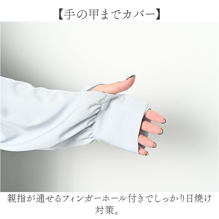 ・親指が通せるフィンガーホール付きでしっかり日焼け対策。