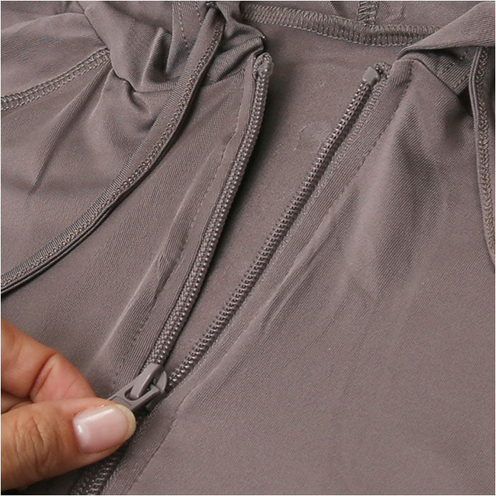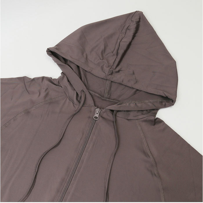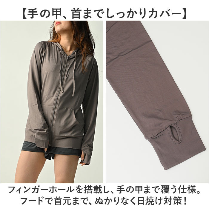 ・フィンガーホールを搭載し、手の甲まで覆う仕様。フードで首元まで、ぬかりなく日焼け対策!