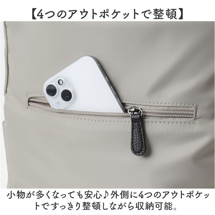 ・小物が多くなっても安心♪外側に4つのアウトポケットですっきり整頓しながら収納可能。