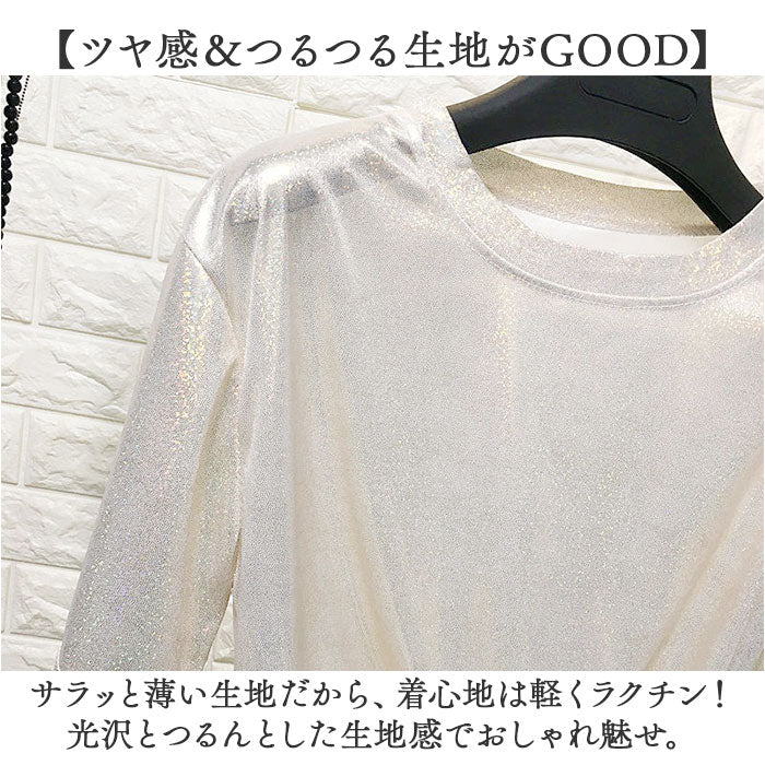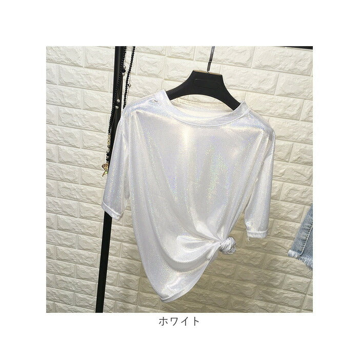 ラメTシャツ 半袖 ダンス衣装 通販 ラメtシャツ tシャツ Tシャツ レディースTシャツ レディースtシャツ 衣装 カットソー ラメ きらきら クルーネック トップス レディース ダンス