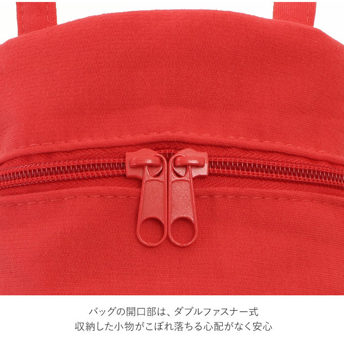 ・ふんわり柔らかスエット素材でできたミニバッグ。手提げ型なので、ミニお弁当箱やおにぎりなどを可愛く持ち歩ける。(※お弁当箱のサイズによっては収納できない場合がございます。)