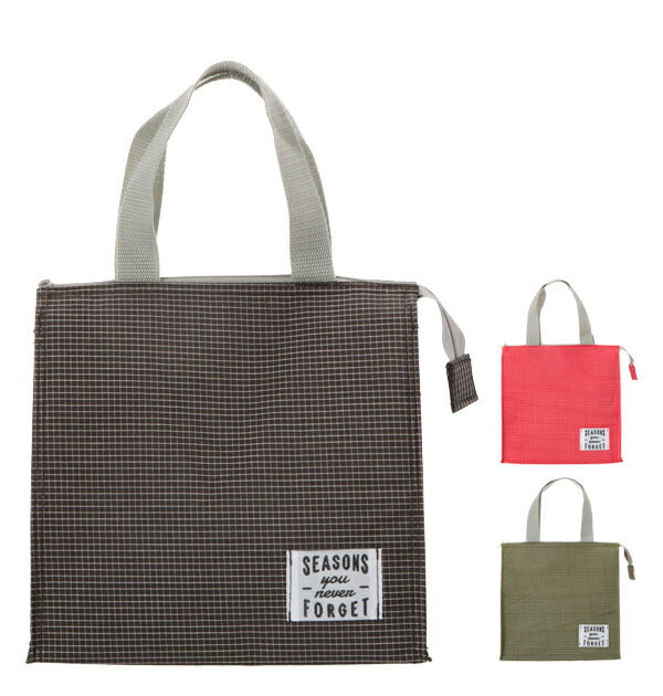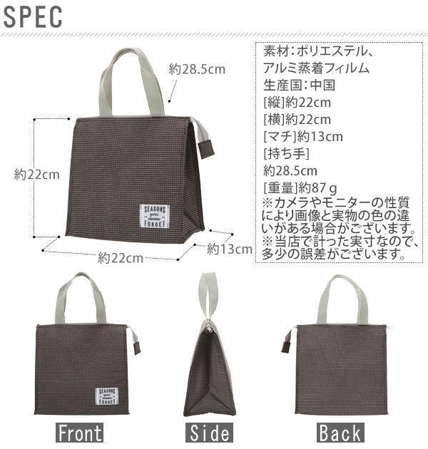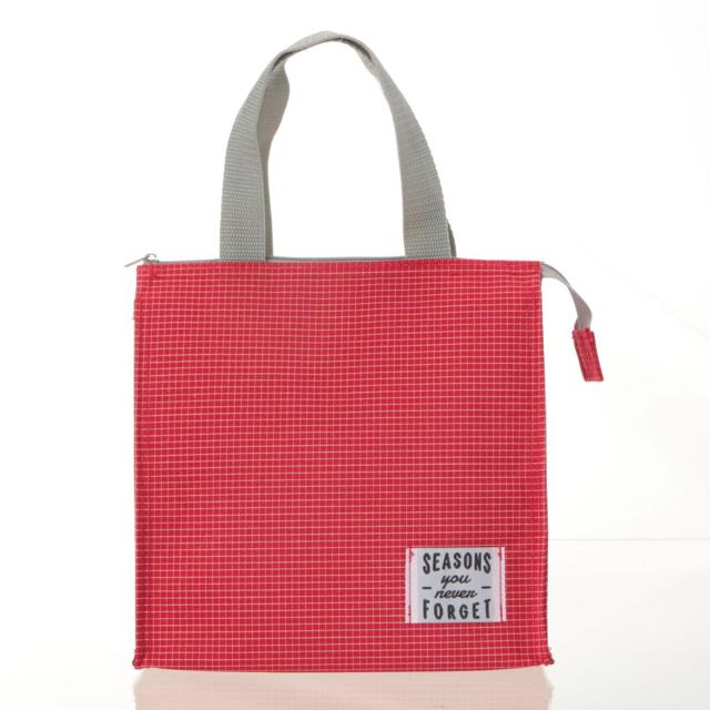 格子柄の保冷付きスクエアトートが登場!おしゃれな織りネーム付き♪ランチバッグやお弁当袋に最適!内側のアルミが保冷保温効果を発揮、食材が傷むのを防ぎ、さらに簡易保温力も。スリムだけどマチ付きだから、お弁当箱や水筒を入れた時も傾きにくく、ファスナー開閉だから中身が見えません。シンプルだけどオシャレなデザインが男性の方にもオススメのランチバッグです♪