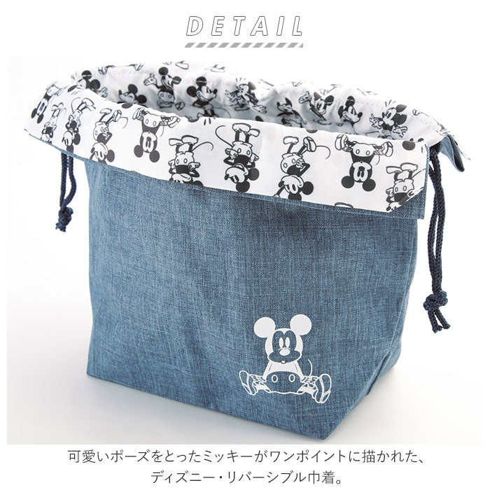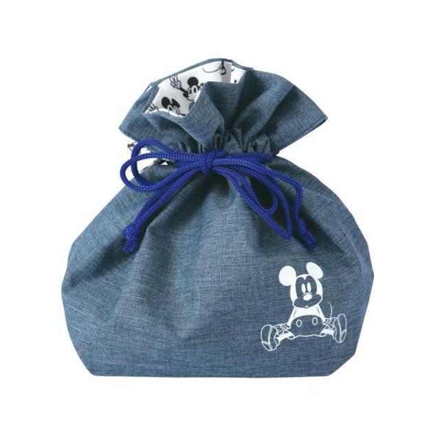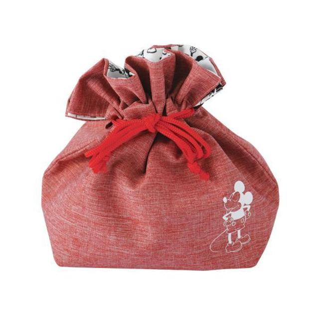 ・お弁当の時間が楽しくなる、表情豊かなミッキー柄のシンプルな巾着バッグ。約11cmのマチでお弁当箱がしっかりと入り、保冷剤を入れて紐をしっかり縛れば、お弁当の時間まで美味しさ長持ち。