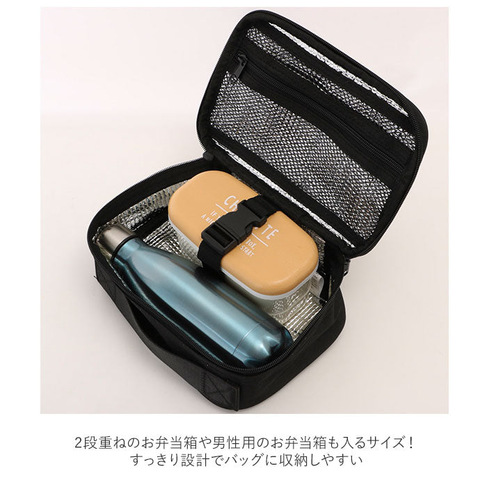 ・2段重ねのお弁当箱や男性用のお弁当箱も入るサイズ!すっきり設計でバッグに収納しやすい。