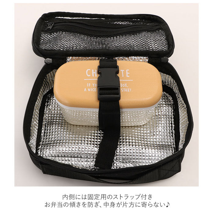 ・内側には固定用のストラップ付き。お弁当の傾きを防ぎ、中身が片方に寄らない♪