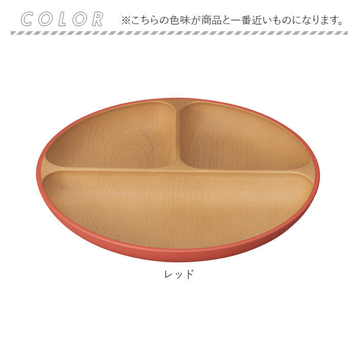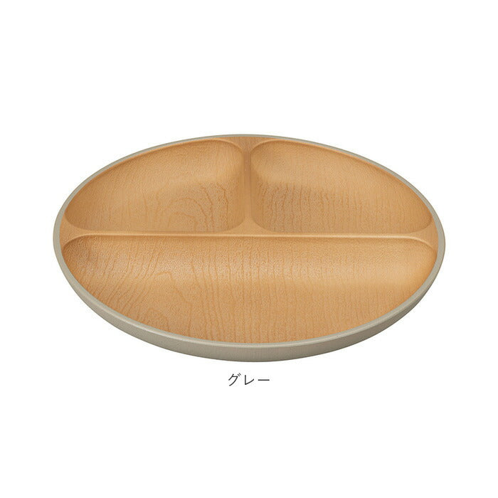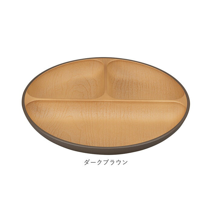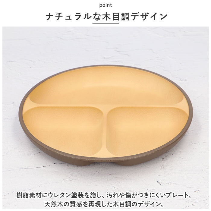 ・樹脂素材にウレタン塗装を施し、汚れや傷がつきにくいプレート。天然木の質感を再現した木目調のデザイン。