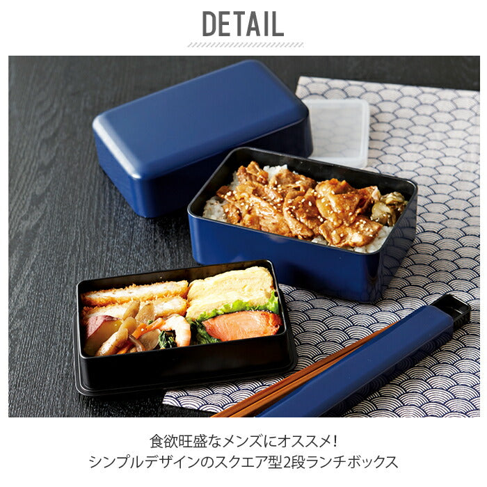 ・食欲旺盛なメンズにオススメ!シンプルデザインのスクエア型2段ランチボックス。