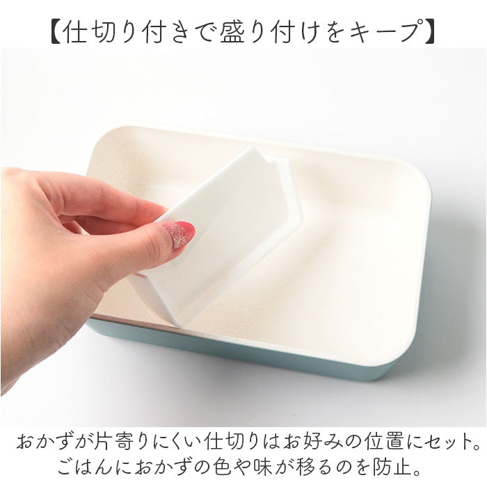 ・おかずが片寄りにくい仕切りはお好みの位置にセット。ごはんにおかずの色や味が移るのを防止。