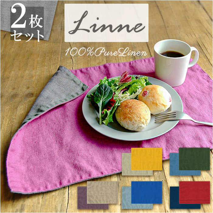 ランチョンマット 布 無地 通販 ランチマット おしゃれ ランチ マット 2枚セット プレイスマット 布製 洗える リネン 麻 46cm リバーシブル シンプル ナチュラル キッチン 子供用 小学校