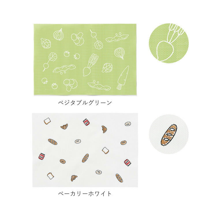 ・サッと水洗いできて洗濯いらずのランチョンマット。そのままシンクで洗ったり手軽に拭ける、PVC素材を使用。