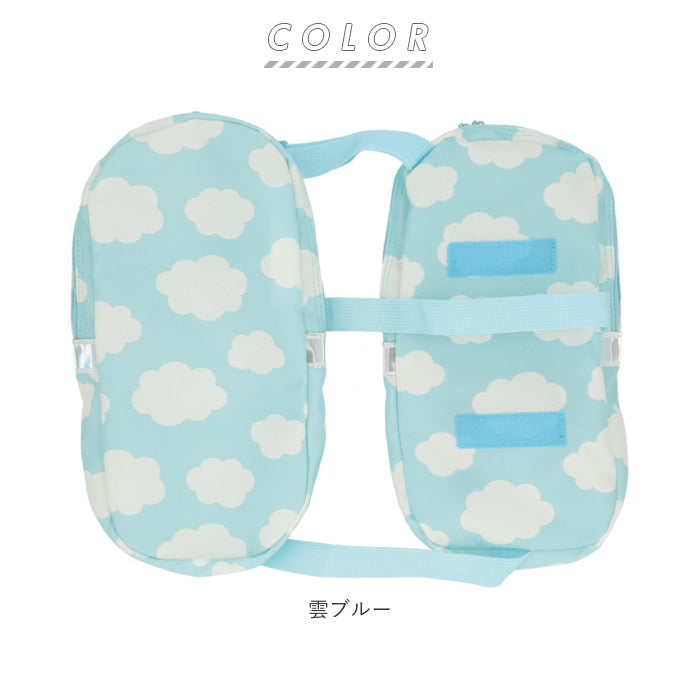 ・ランドセルの両側面に取り付けるタイプの収納補助バッグ。両手がフリーになるから、いつもの登校・下校時間もラクラク安全!雨の日も傘がしっかり持てる!
