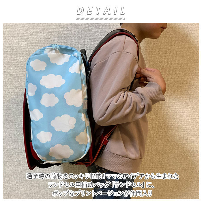・通学時の荷物をスッキリ収納!ママのアイデアから生まれたランドセル用補助バッグ「サンドセル」に、ポップなプリントバージョンが仲間入り。