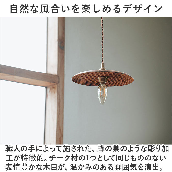 ・職人の手によって施された、蜂の巣のような彫り加工が特徴的。チーク材の1つとして同じもののない表情豊かな木目が、温かみのある雰囲気を演出。
