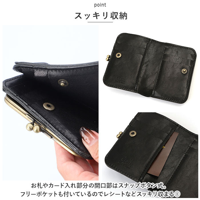 リアン Lien 財布 二つ折り 通販 LIL1201 コルド がま口2つ折りウォレット 二つ折り財布 栃木レザー 本革 革 メンズ レディース 小銭入れあり がま口財布 サイフ さいふ レザー 牛革