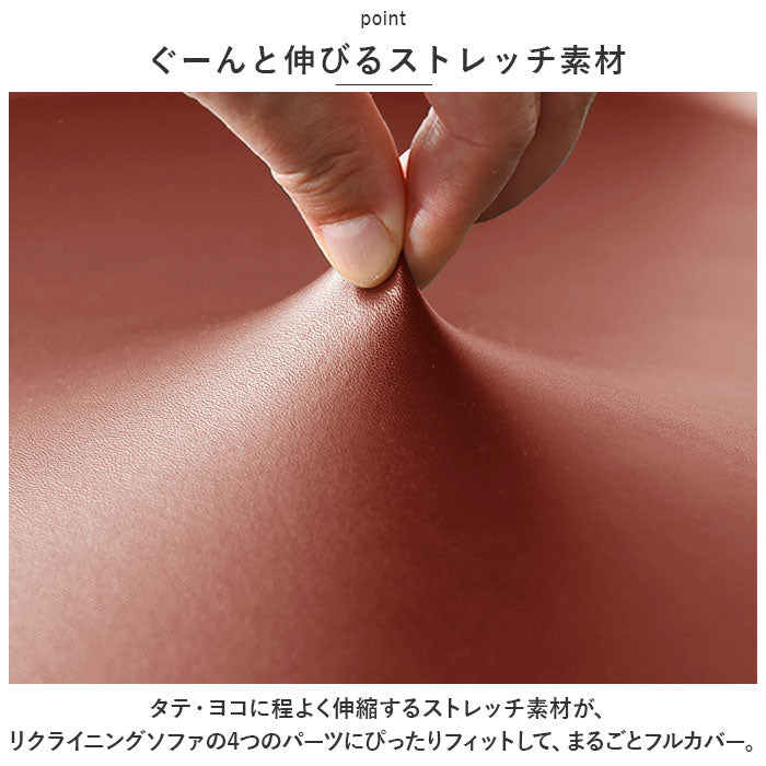 ・タテ・ヨコに程よく伸縮するストレッチ素材が、リクライニングソファの4つのパーツにぴったりフィットして、まるごとフルカバー。