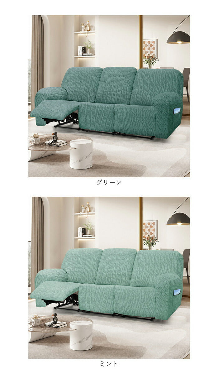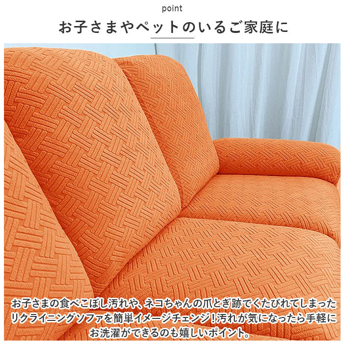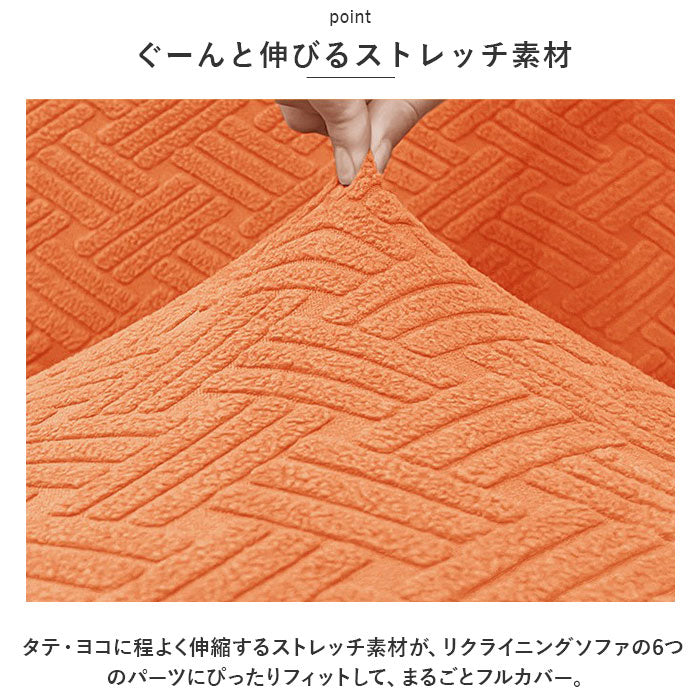 ・タテ・ヨコに程よく伸縮するストレッチ素材が、リクライニングソファの6つのパーツにぴったりフィットして、まるごとフルカバー。