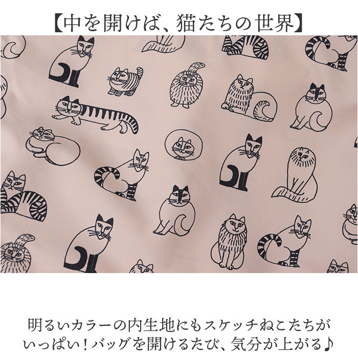 ・明るいカラーの内生地にもスケッチねこたちがいっぱい!バッグを開けるたび、気分が上がる♪