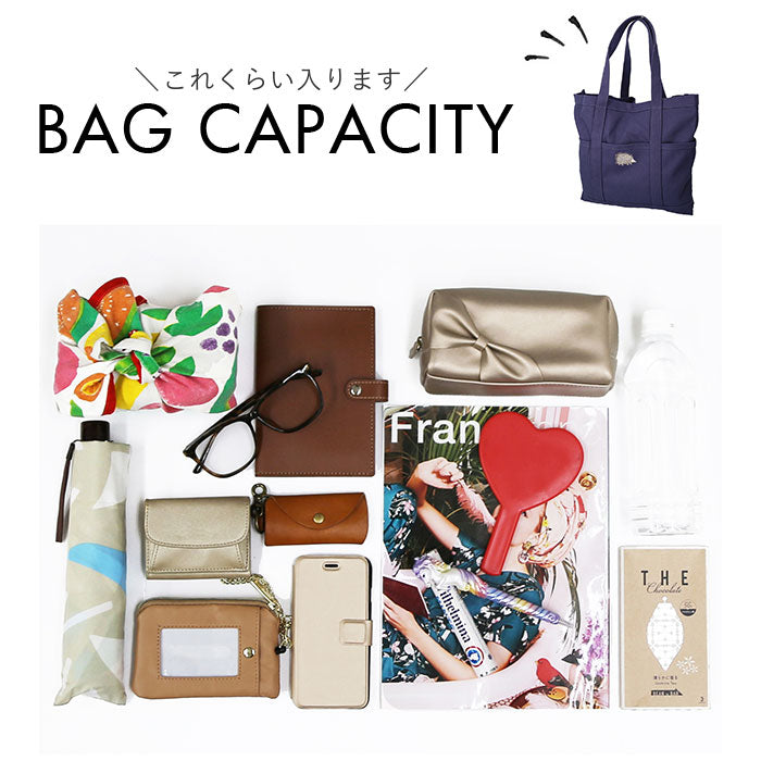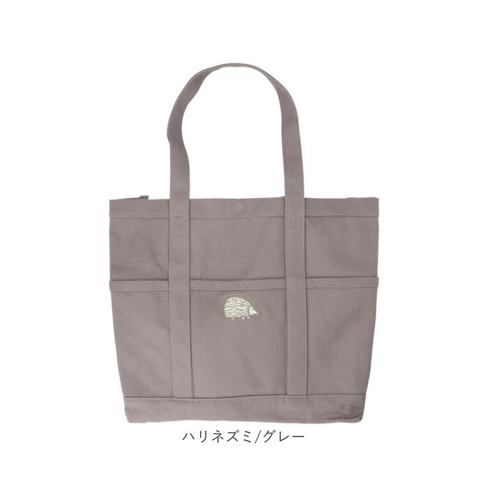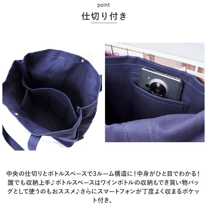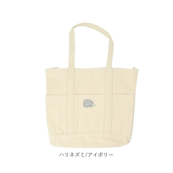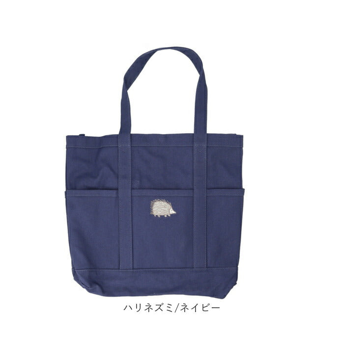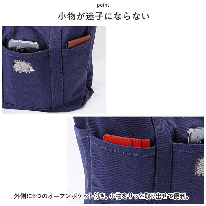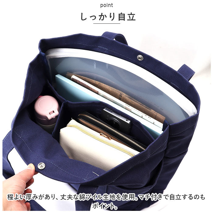 ・程よい厚みがあり、丈夫な綿ツイル生地を使用。マチ付きで自立するのもポイント。
