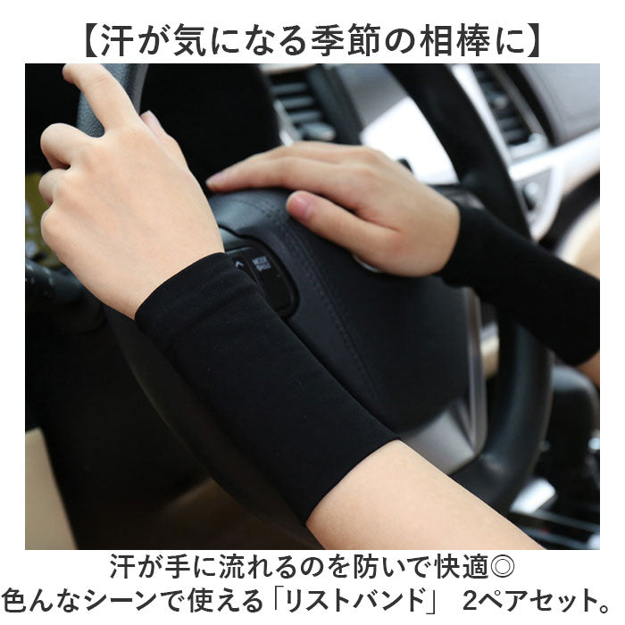 リストバンド 薄手 運転 アウトドア 2ペアセット
