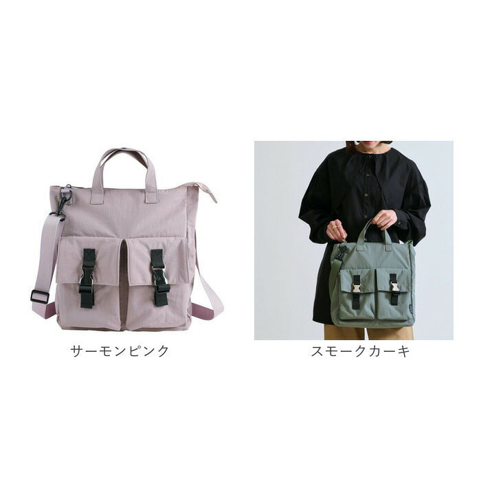 ・ミリタリーらしさを残しつつ、おしゃれなくすみカラーで仕上げたトート。内生地の視認性も◎