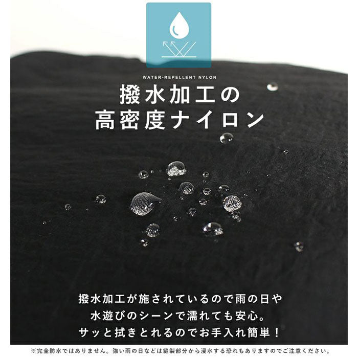 ・汚れや水滴を弾きやすい、撥水加工を施したナイロン生地。お手入れも拭き取るだけ。