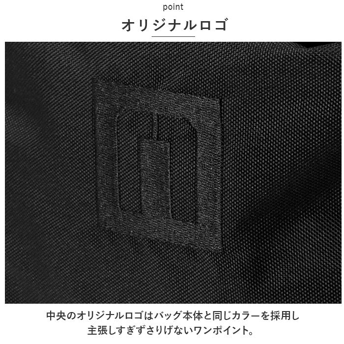 ・中央のオリジナルロゴはバッグ本体と同じカラーを採用し主張しすぎずさりげないワンポイント。