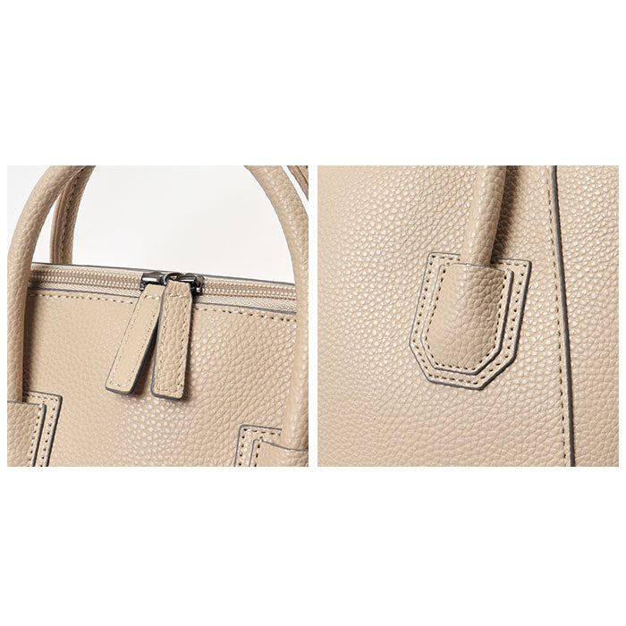 ・ミニマルな見た目ながらにマチがありコスメポーチ等の収納もOK!横幅もある作りで長財布が余裕で出し入れできるのも嬉しいポイント。