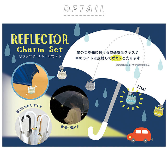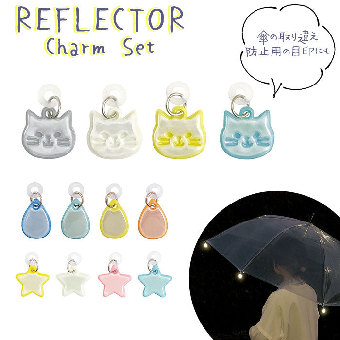 リフレクター キーホルダー 車のライト 反射 通販 傘 アンブレラマーカー リフレクターチャームセット チャーム 交通安全 目印 取り付け 簡単 夜道も安全 かさ カサ かわいい ブランド DECOLE デコレ デコレ雑貨 便利 便利グッズ