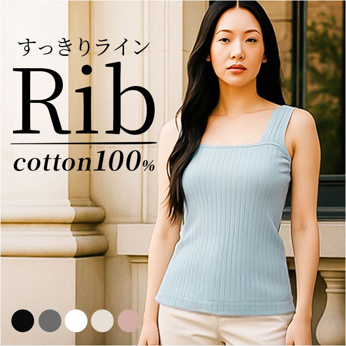 ・衣類の刺激からお肌を守り、体温調節を助ける◎インナー使いしやすいリブ タンクトップ♪