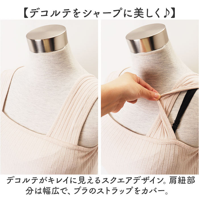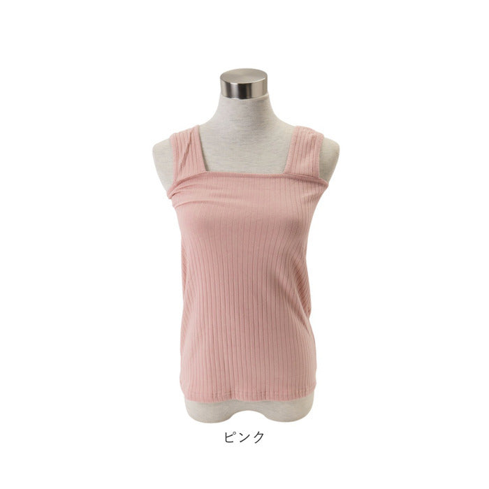 リブタンクトップ レディース 通販 タンクトップ ブラ紐隠し ブラ紐 見えない タンク 重ね着 ブラ紐を隠せる インナー トップス 夏 ノースリーブ 無地 大きいサイズ シンプル カットソー