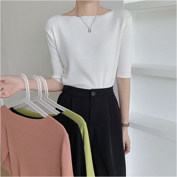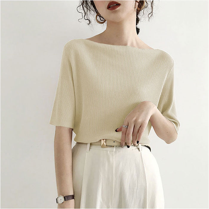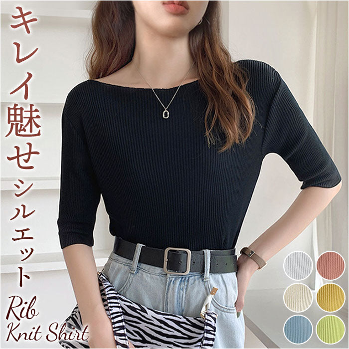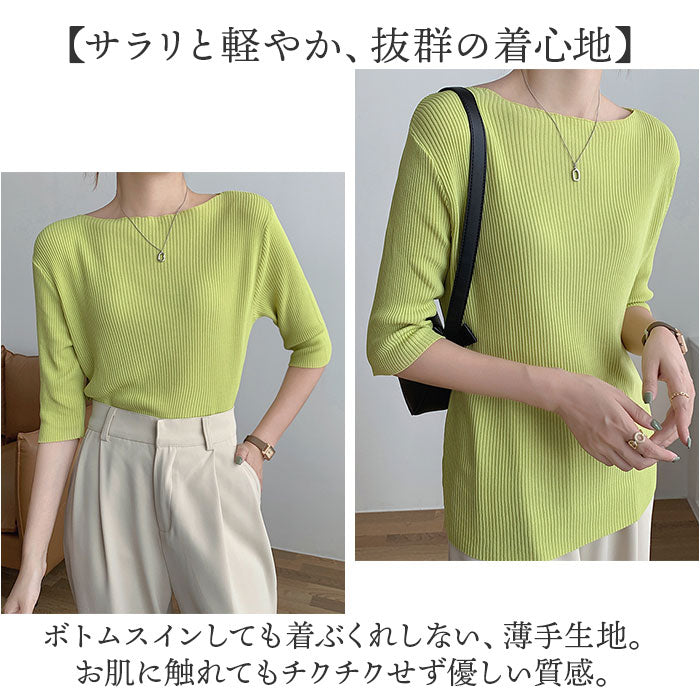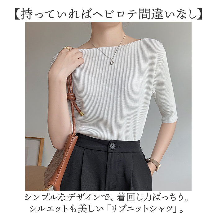 リブニットシャツ ボートネック レディース 通販 リブ ニット セーター リブニット シャツ ボートネックニット 着回し 着まわし 無地 ベーシック オフィス ナチュラル カジュアル 上品