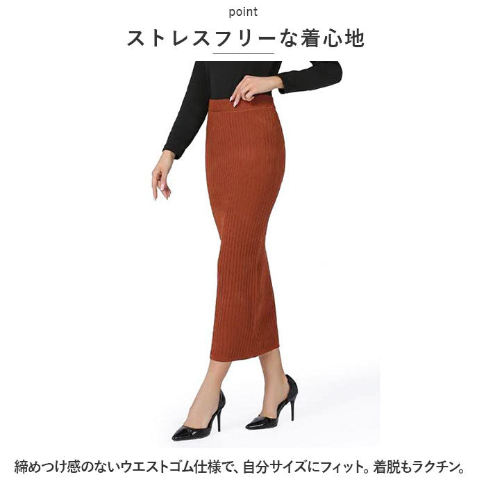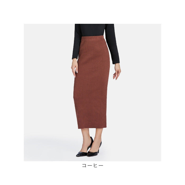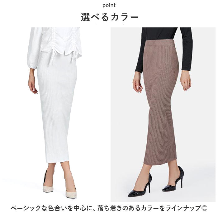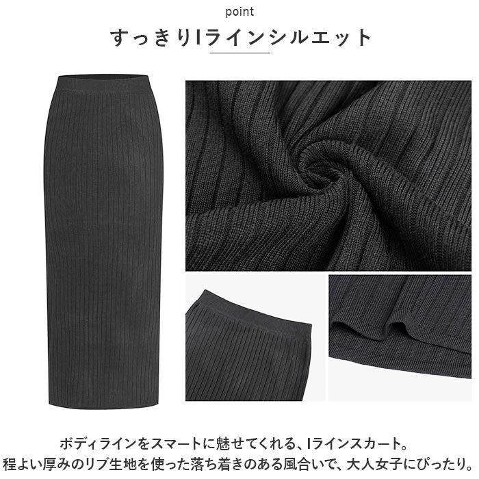 リブニットスカート 通販 タイトスカート ニットスカート スカート ボトムス ロング ミモレ丈 レディース Iライン ストレート ペンシル ストレッチ 伸縮 シンプル 無地 通勤 通学
