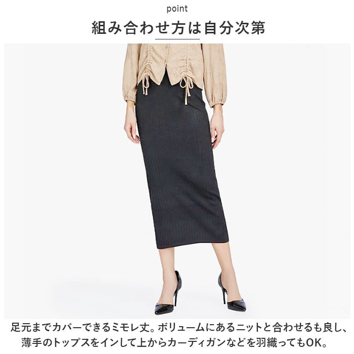 ・ボディラインをスマートに魅せてくれる、Iラインスカート。程よい厚みのリブ生地を使った落ち着きのある風合いで、大人女子にぴったり。
