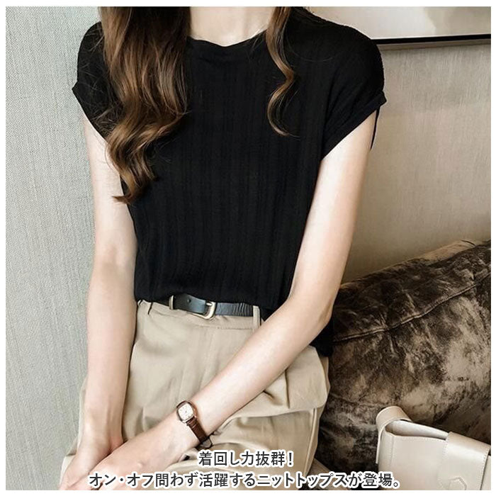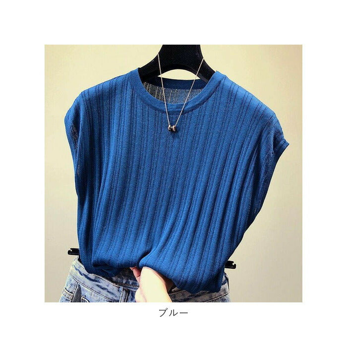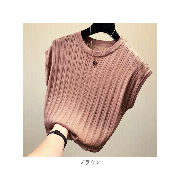 リブニット 半袖 レディース 通販 カットソー シャツ Tシャツ 半袖ニット タンクトップ ノースリーブ トップス 通勤 通学 無地 シンプル カジュアル きれいめ おしゃれ 大人 可愛い 春 夏