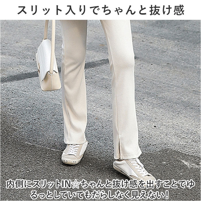 リブパンツ レディース 通販 パンツ ズボン 長ズボン レギンス ストレートパンツ ブーツカットパンツ スリット ブーツカット 普段使い ゆったり 和風 春 夏 カジュアル きれいめ