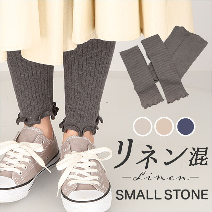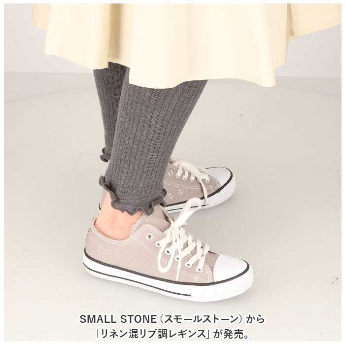 リブ レディース レギンス 通販 スパッツ リネン混 リブレギンス 10分丈 裾フリル シンプル 無地 ナチュラル 春 夏 春夏 冷房対策 冷え対策 秋 冬 秋冬 SMALL STONE スモールストーン