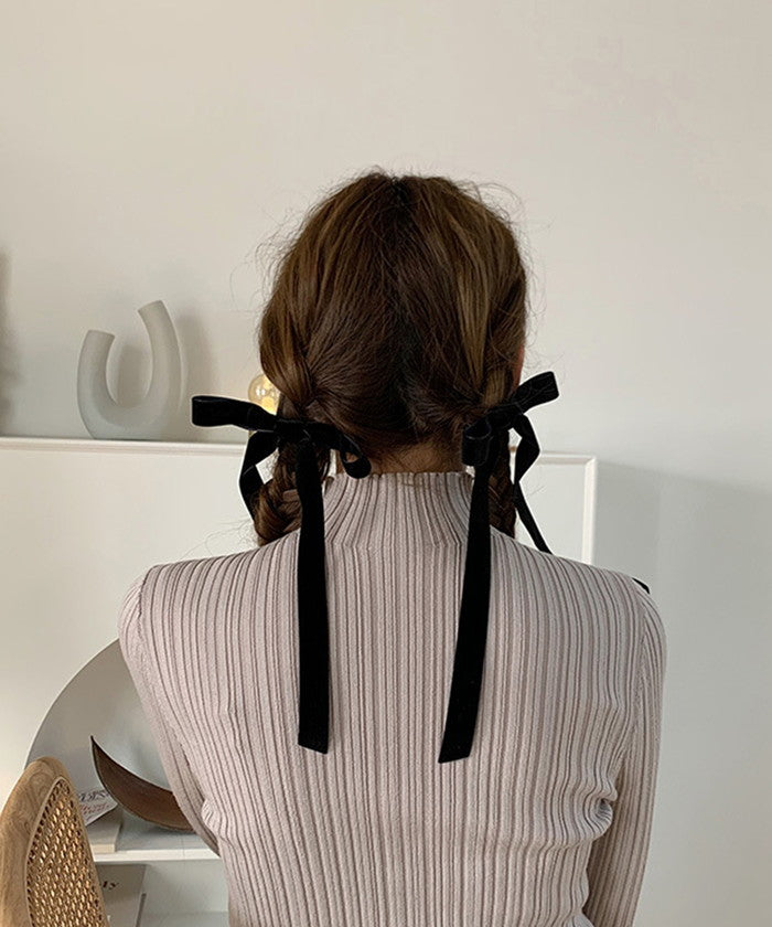 ・ブラックリボンのかわいい2本セットのヘアクリップ。