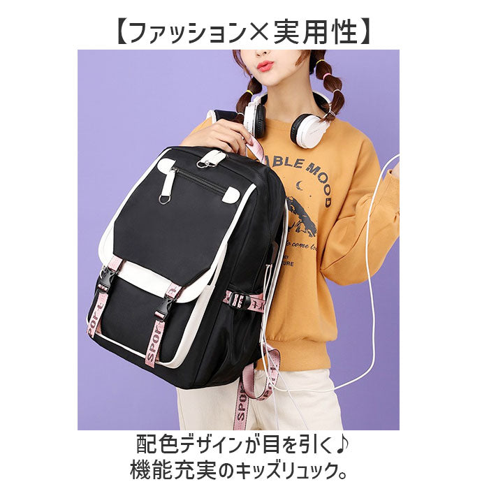 ・配色デザインが目を引く♪機能充実のキッズリュック。