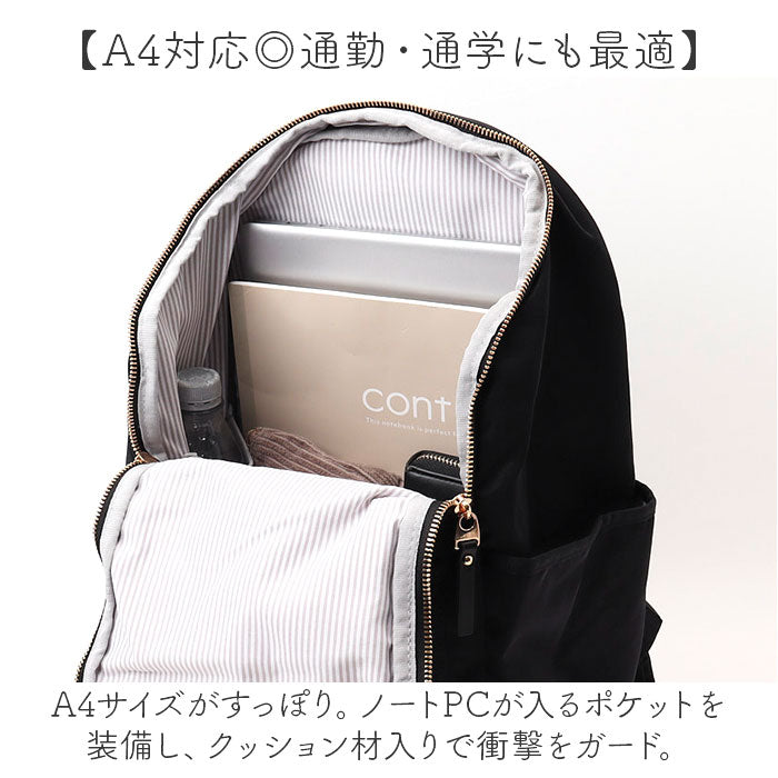 ・A4サイズがすっぽり。ノートPCが入るポケットを装備し、クッション材入りで衝撃をガード。