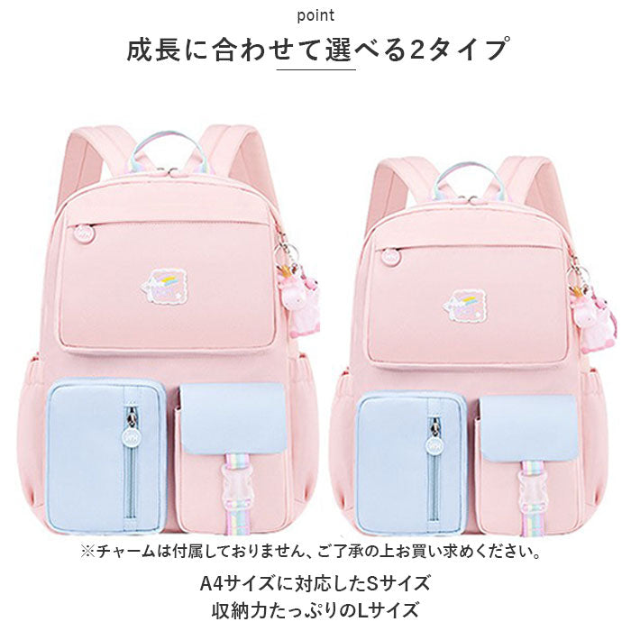 ・リュックのサイズは、スモールサイズ(S)とラージサイズ(L)の2種類からチョイス可能。A4サイズに対応したSサイズは低学年の女の子に。高学年のお姉さんになったら、さらに収納力たっぷりのLサイズがオススメ!
